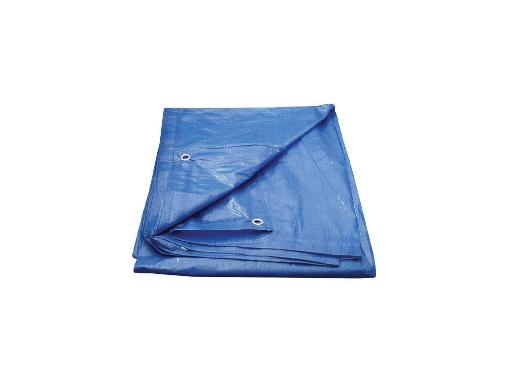 Zakrývací plachta s kovovými oky pro efektivní dočasné zakrytí stavebních strojů, materiálů, nářadí, strojů a vozíků, na zahradě pro zakrytí dřeva na otop, slámy, shrabaného listí, bazénů proti nečistotám.