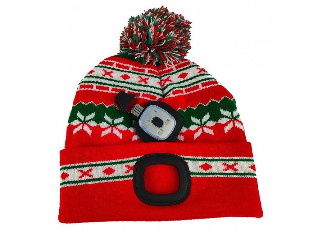Čepice LED s bambulí, 4xSMD LED, USB, červeno-zelená, uni